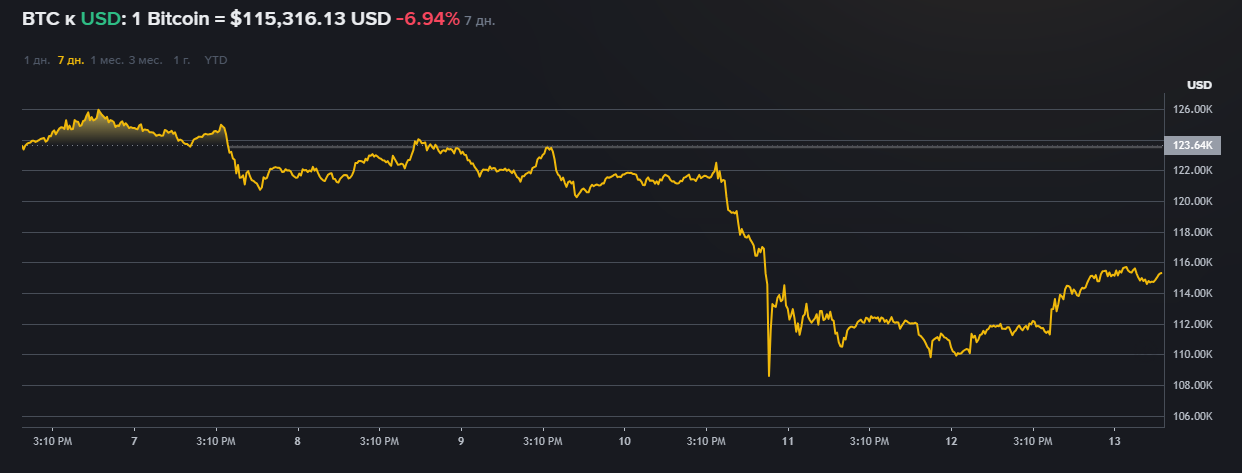 13 октября 2025 года курс биткоина (BTC) вырос на 2,62%, достигнув отметки около 115 316 долларов США. Несмотря на резкую коррекцию в начале октября, когда стоимость криптовалюты опускалась до примерно 110 000 долларов на фоне геополитической напряженности и нестабильности рынка, биткоин смог восстановить свои позиции. В течение последних нескольких дней цифровой актив демонстрирует укрепление, поддерживаемое интересом институциональных инвесторов и благоприятной макроэкономической ситуацией.