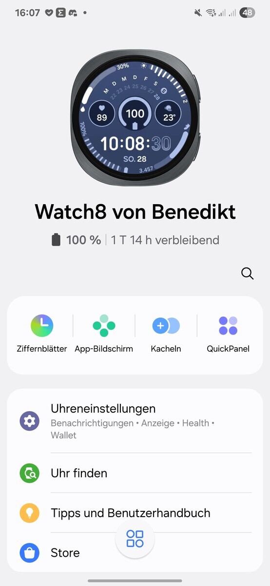 После включения Samsung Galaxy Watch 8 автоматически отображается на находящихся поблизости Android-смартфонах. В нашем тесте мы подключаем умные часы к Samsung Galaxy S24 Ultra. Необходимо установить приложение Samsung Wear в качестве программного обеспечения и загрузить расширение для Galaxy Watch 8. В процессе настройки на часах WearOS сохраняется учётная запись Google, и требуется предоставить ряд разрешений.